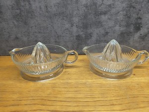 Lot Of 2 Vintage Anchor Hocking 1950-60Clear Ribbed Pressed Glass Juicer/Reamer