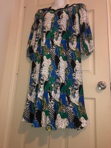 Abito vintage Diane Freis seta boho nautico anni 80 verticale plissettato caftano L EUR 116,27EUR 129,19