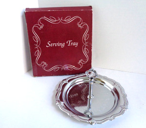 Vassoio da portata rotondo 7" manico singolo decorativo leggero placcato argento senza marchio