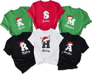T-Shirt Personalizzata Famiglia Natale Iniziale e Nome Personalizzata Uomo Donna Bambini Tee EUR 9,09 a EUR 13,64