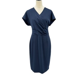 Abito tubino Brooks Brothers 12 blu navy plissettato laterale spacco scollo a V cappuccio manica carriera