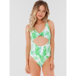 Costume intero Sugar Coast taglio stampa palma tropicale verde bianco taglia L nuovo con etichette EUR 14,74