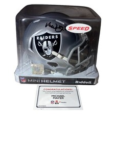 Adesivo mini casco Beckett firmato Michael Mayer Las Vegas Raiders.
