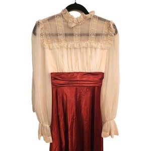 Abito vintage anni 70 Gunne Sax Jessica McClintock rosa pizzo senza spalline raso fiocco taglia 3