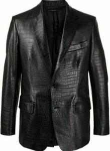 Blazer cappotto uomo elegante coccodrillo goffrato vera pelle di agnello slim fit