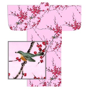 Abito giapponese Yukata kimono cintura donna 58" cotone rosa usignolo uccellino