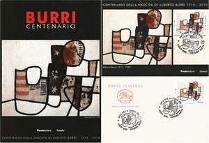 BURRI Francobollo STAMPS Folder 1° Giorno Busta ARTE Povera SACCO SZ 1 Cartolina